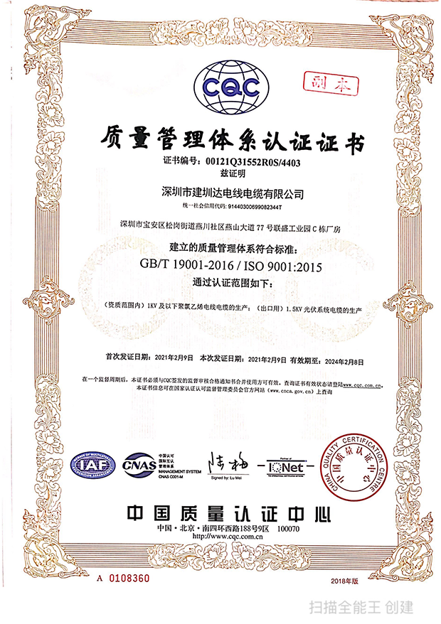 建圳達電纜立足于中國深圳,擁有技術精湛的隊伍、現代化生產設備、精密的檢測儀器,從原材料、生產、成品嚴格按照國家標準檢測,通過多個認證。